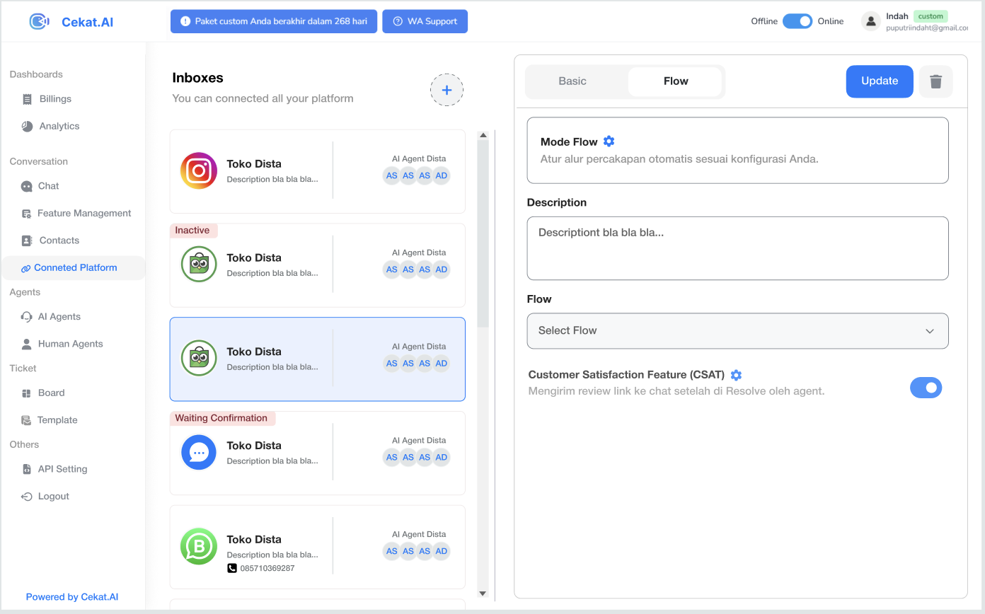 * Flow akan aktif untuk inbox tersebut.