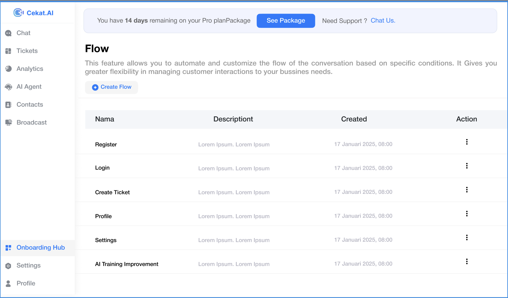 * Pada tab **Flow**, klik tombol **Create Flow** untuk membuat alur baru.