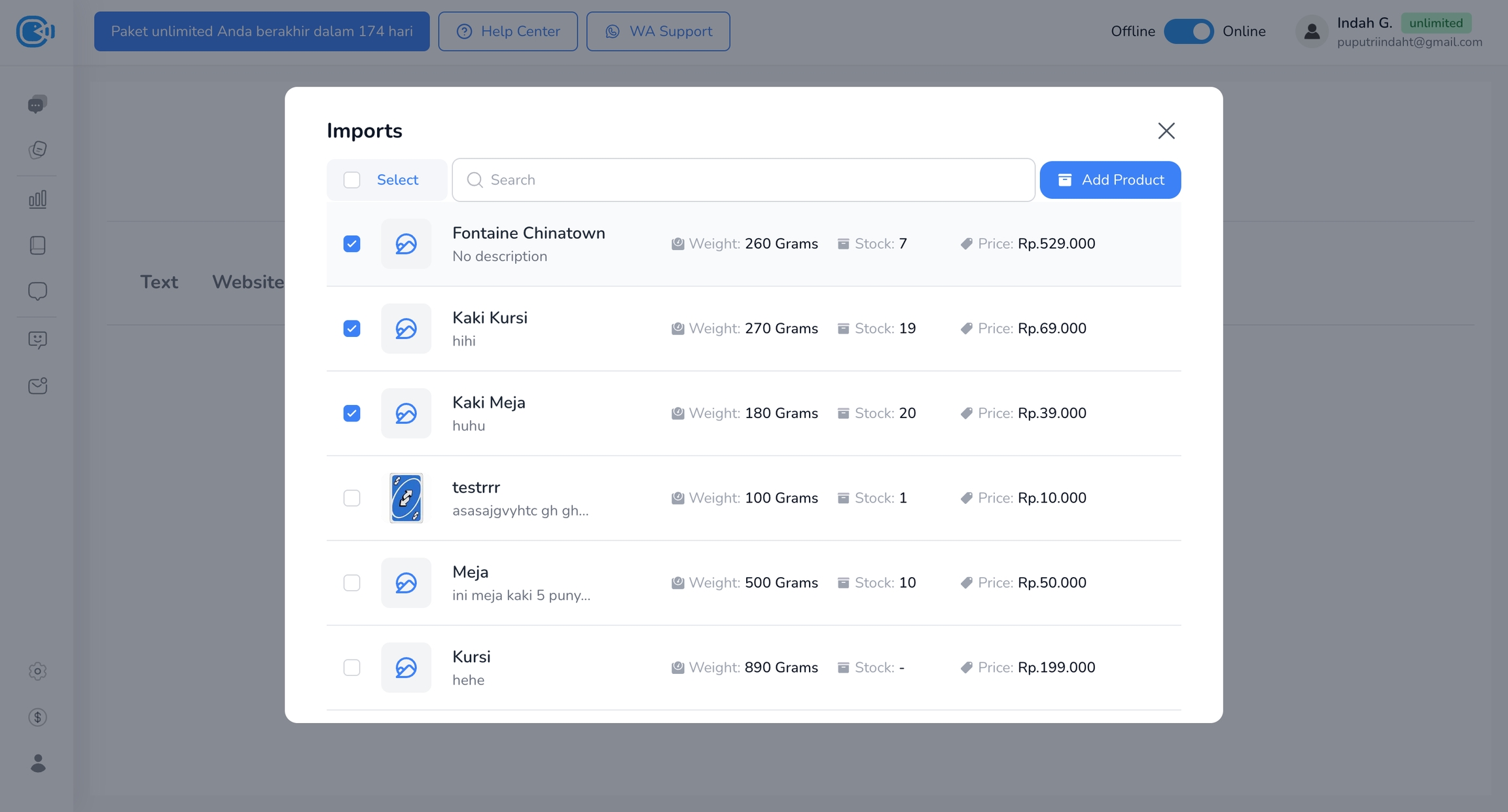 Pilih produk yang ingin diimport ke knowledge dengan memberikan checklist di sebelah produk tersebut.