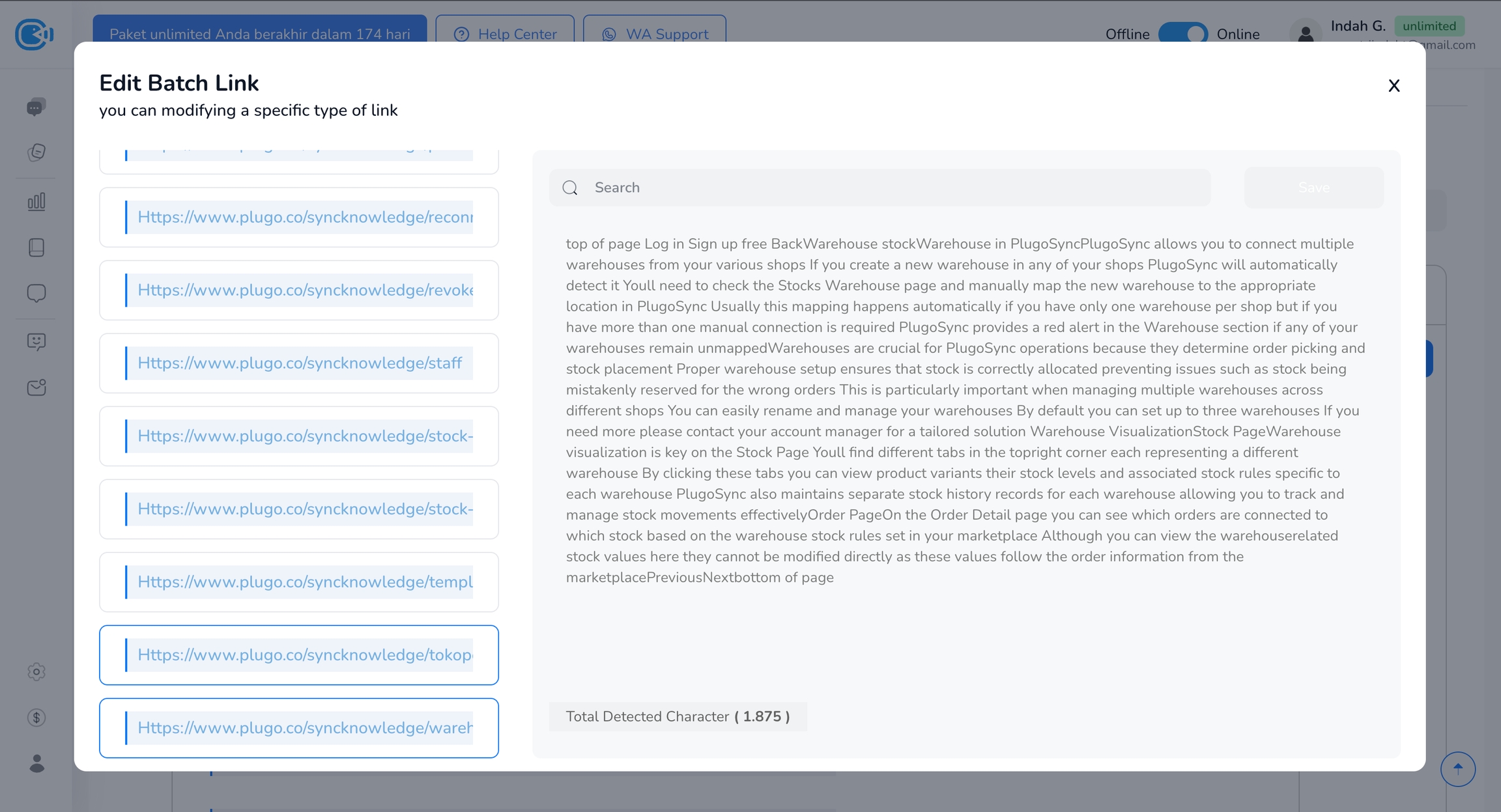 Jika menggunakan batch link, sistem akan mengumpulkan hingga maksimal 30 link.