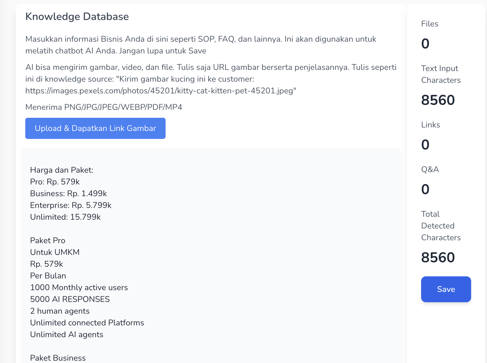 Isi Knowledge dengan informasi bisnis anda