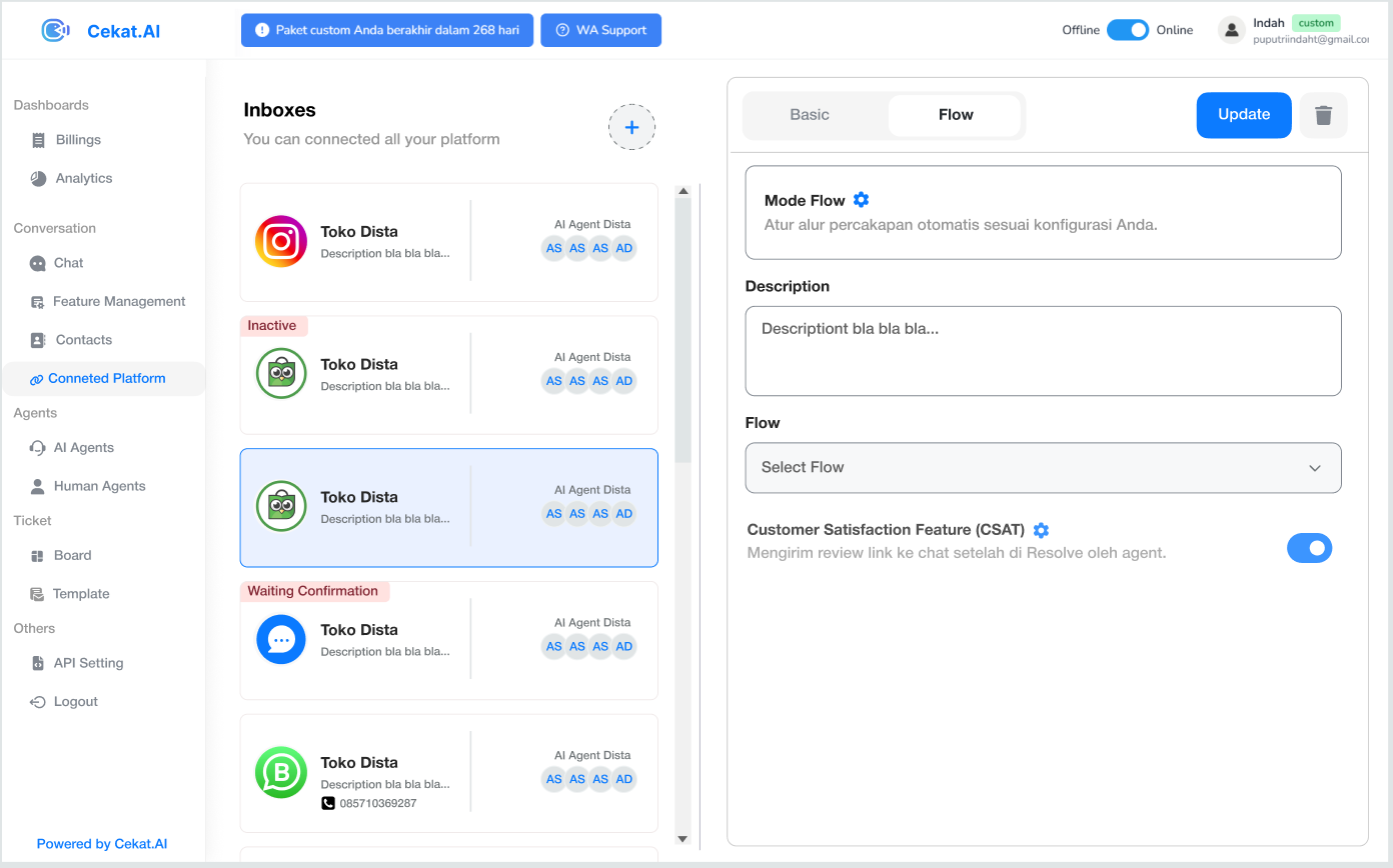 Flow akan aktif untuk inbox tersebut.