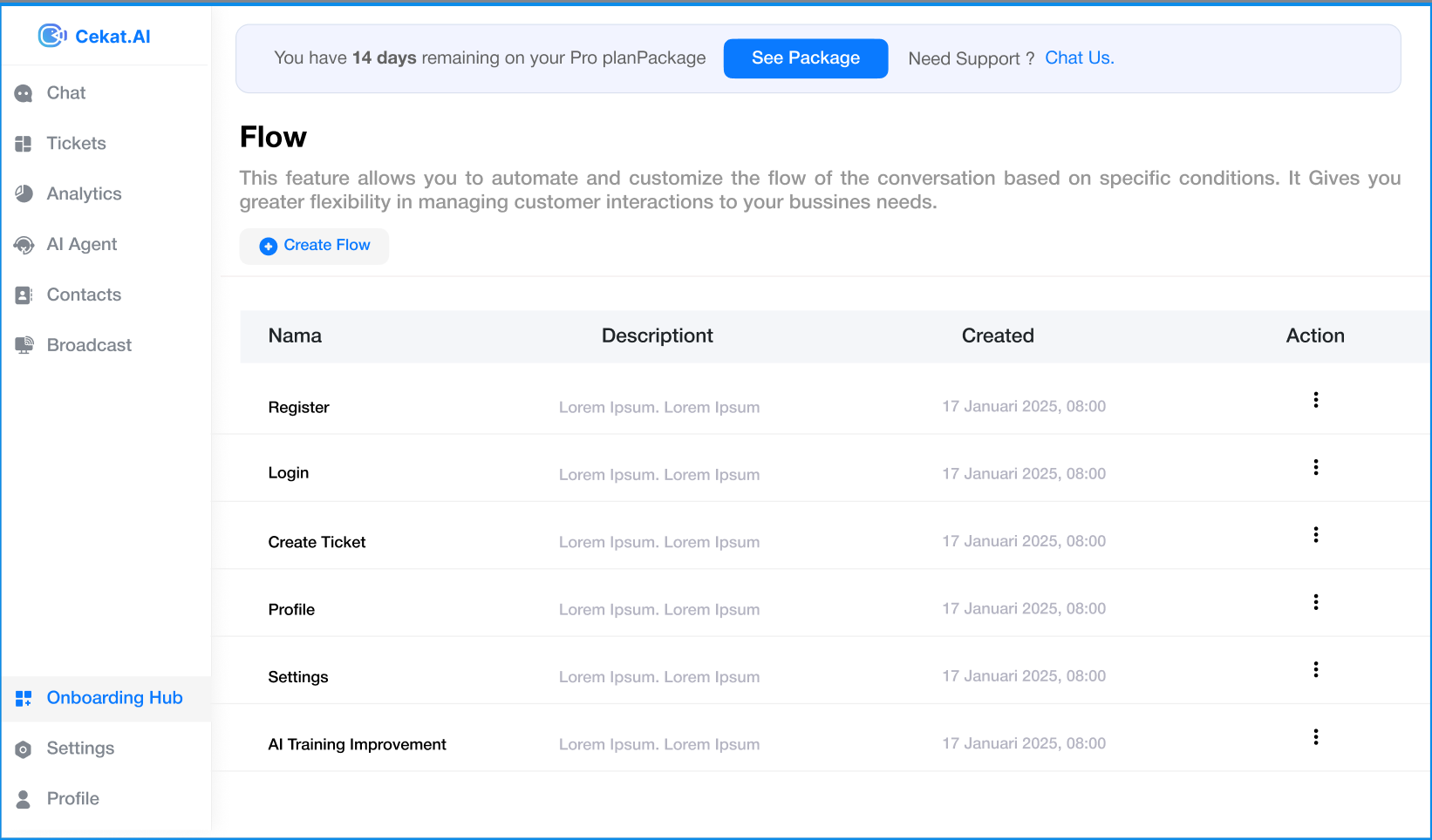Pada tab Flow, klik tombol Create Flow untuk membuat alur baru.
