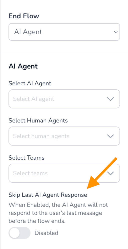 Ketika opsi ini diaktifkan, AI Agent tidak akan merespons pesan terakhir dari user sebelum alur flow berakhir.
