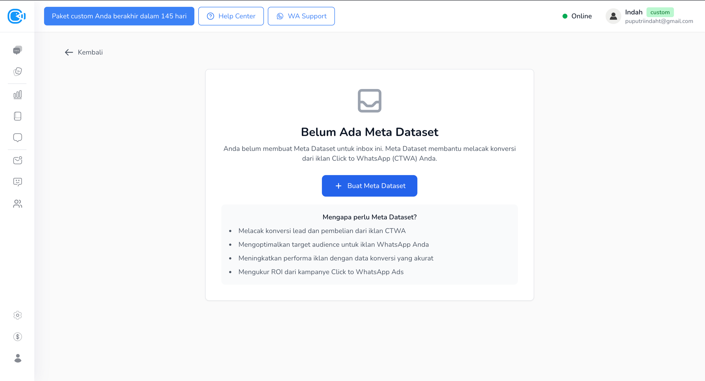 Jika belum memiliki Meta Dataset, klik tombol Buat Meta Dataset.