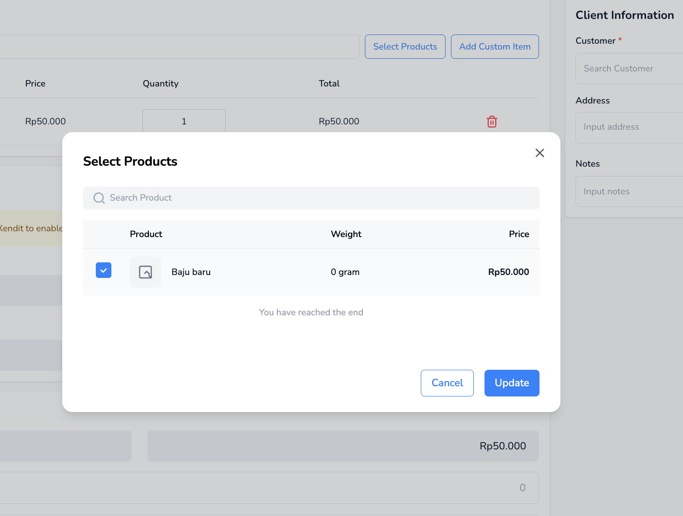 Kamu bisa mencari dan menambahkan produk satu per satu langsung dari kolom search.