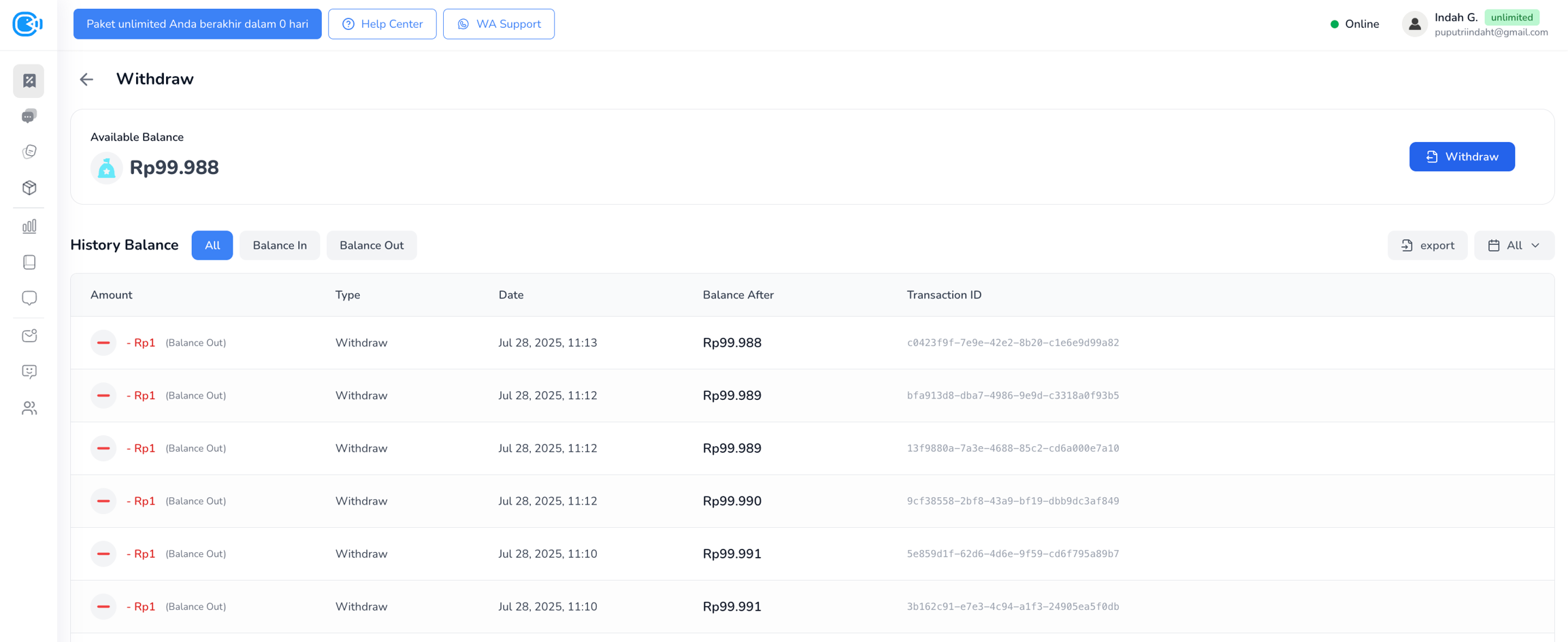 Klik tombol Withdraw