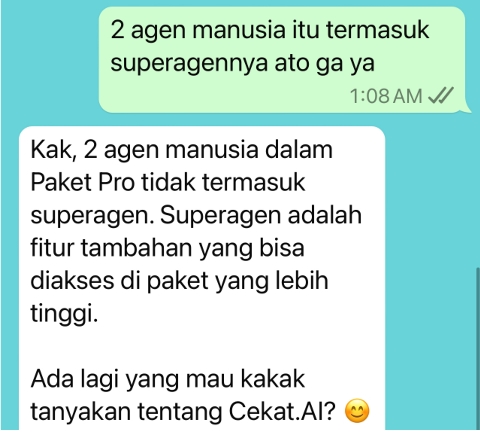 Jika jawaban terlalu panjang, AI dapat memecah teks menjadi beberapa bubble chat agar paragraf tidak terlalu besar.