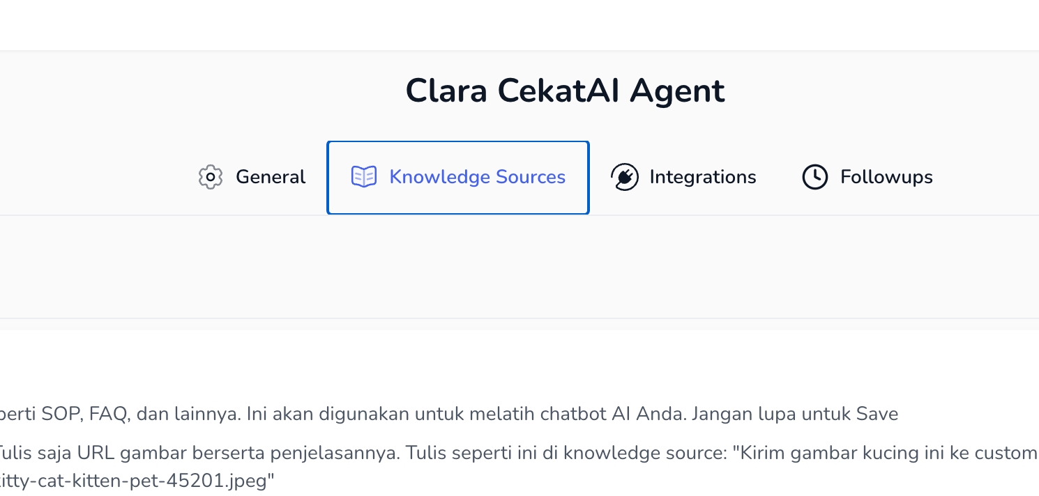 Ini adalah sumber data yang menjadi acuan bagi AI untuk menjawab pertanyaan, memberikan informasi, atau melakukan analisis. Namun, semua informasi yang tertera pada Knowledge Source akan hanya berlaku sebagai informasi, tidak sebagai instruksi.