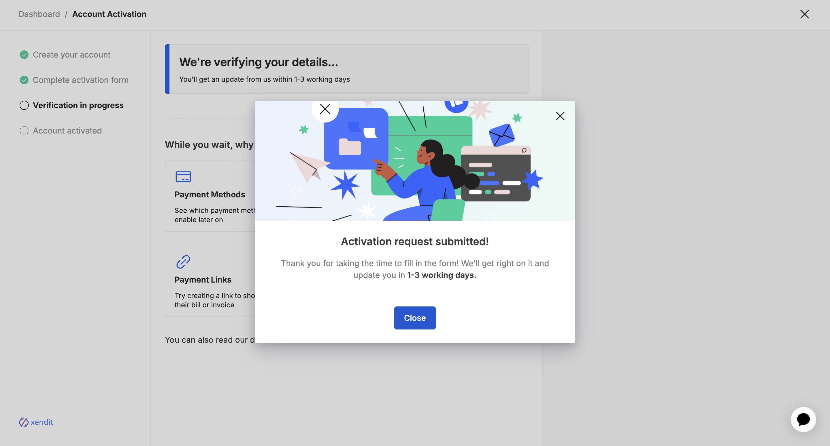 7. **Proses aktivasi Xendit akan berlangsung 1–3 hari kerja**