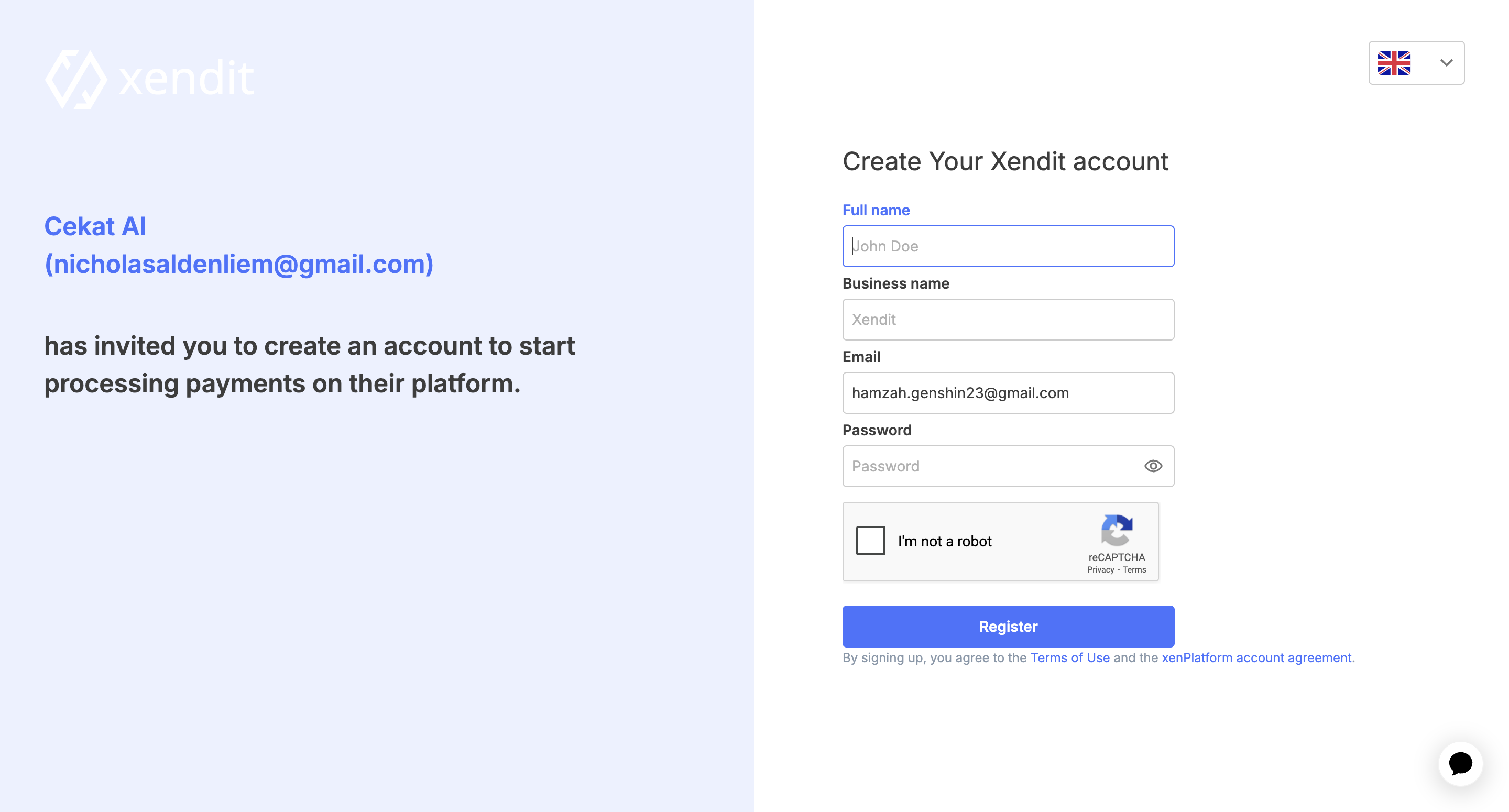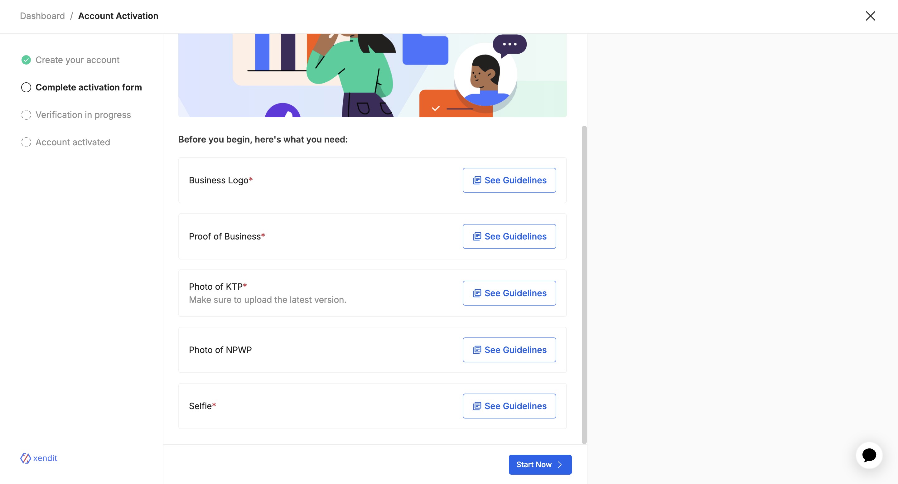 3. **Aktifkan Xendit Account untuk menggunakan Payment Link**